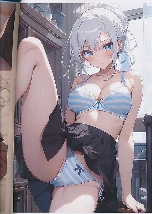 しましまパンツ見せてくれる銀髪ポニテ巨乳のお姉さん AI実験本1